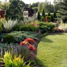 Vaheldusrikkad istutused. Madalad ja kõrged okaspuuvormid, sekka värvikaid põõsaid ja püsikuid kirjule istutusalale sobivate korduste ja aktsentidega.