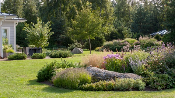 Suured terrassid, mugavad istumiskohad, avarus ja kaunid vaated – suur aed on nagu mugav roheline elutuba, kus on mõnus aega veeta ja veidi ka aiatööd teha.