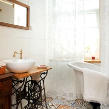 Tapeedi leidis ta kiiresti, sest valik ei olnud suur. Vanniga läks kauem aega, sest esimene valik osutus väikese vannitoa jaoks liiga suureks. Uus, väiksem vann, läks esimesest kaks korda rohkem maksma. Laua leidis Elis Osta.ee-st ja lasi restaureerida. Oma valikutes on perenaine võimalust mööda lähtunud taaskasutusest: teisel ringil on ka elutoa tugitool, söögilaua toolid, telerialus ning magamistoa riidekapp.