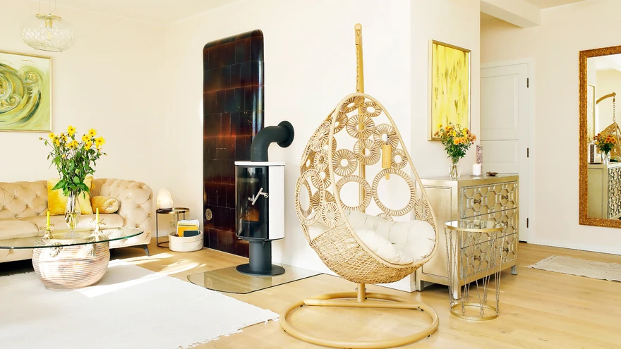 Teise korruse avarasse kolmetoalisse korterisse sisenedes püüavad pilku punutud ripptool, akvaarium, maalid, toataimed ja tuules kõikuvad männiladvad akna taga. Õhus hõljub see eriline soojus, mis tuleb küdevast puupliidist. „Pliidi lasin korda teha, mulle meeldib tule praksumine. Plaanis on ka klaasist pliidiuks hankida,” ütleb perenaine.