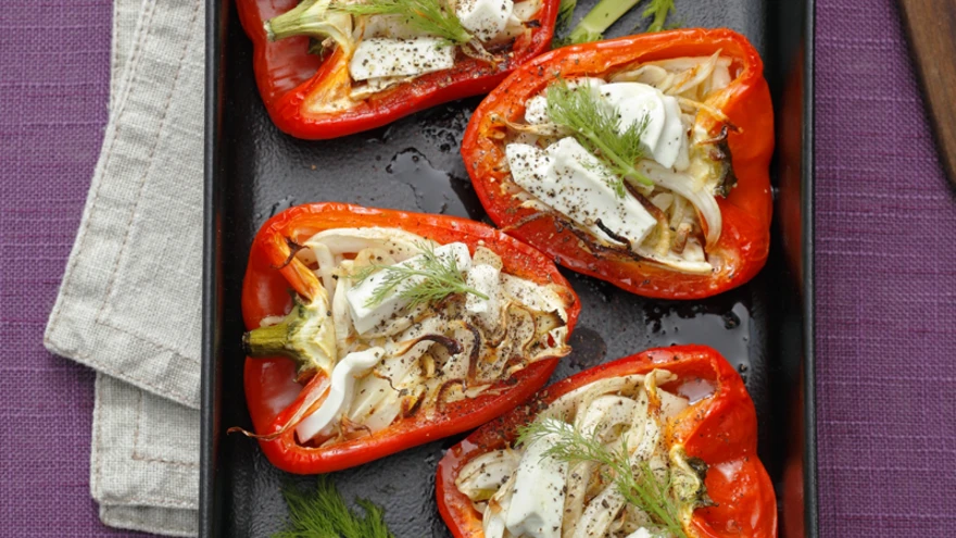 Paprikaid ei pea sugugi alati riisi ja hakklihaga täitma. Siin üks põnev lihata versioon.