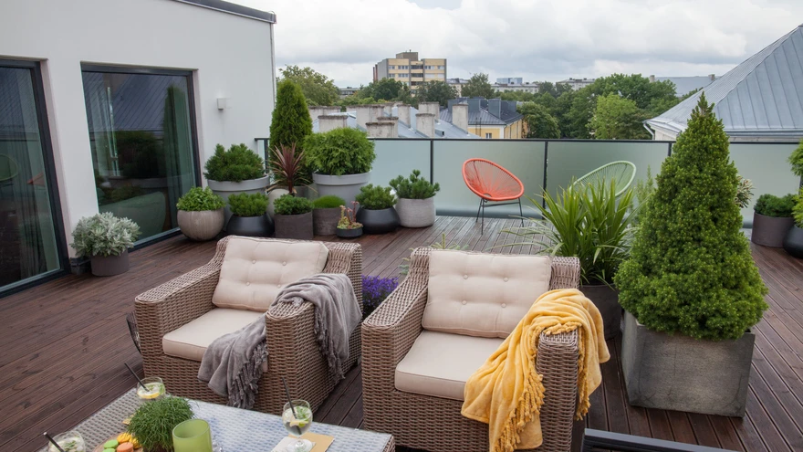 Kesklinna vaikses sopis kuuenda korruse terrassil keset rohelust on tunne nagu maal vanaema juures.