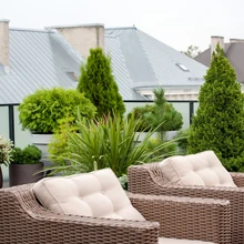 Täielikult päikesele avatud ja tumeda põrandaga katuseterrassil on kuumadel suvepäevadel täielik leitsak ja taimed anuvad juua. Õnneks käib kastmine lihtsalt, sest terrassil on veekraan, kuhu tuleb ühendada diivani all peidus olev voolik.