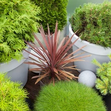 Peale mändide on katusel olevas aiakeses ka elupuid, mõned kuused, ebaküpress ja eksootiline sirmokas. Okkaliste kerade ja koonuste keskel on siiski ka veidi leheilu: rododendron, lõuna-tõlvpuud, aruheinad, rosmariin, lavendlid, mündid, salvei, madalad kukeharjad.