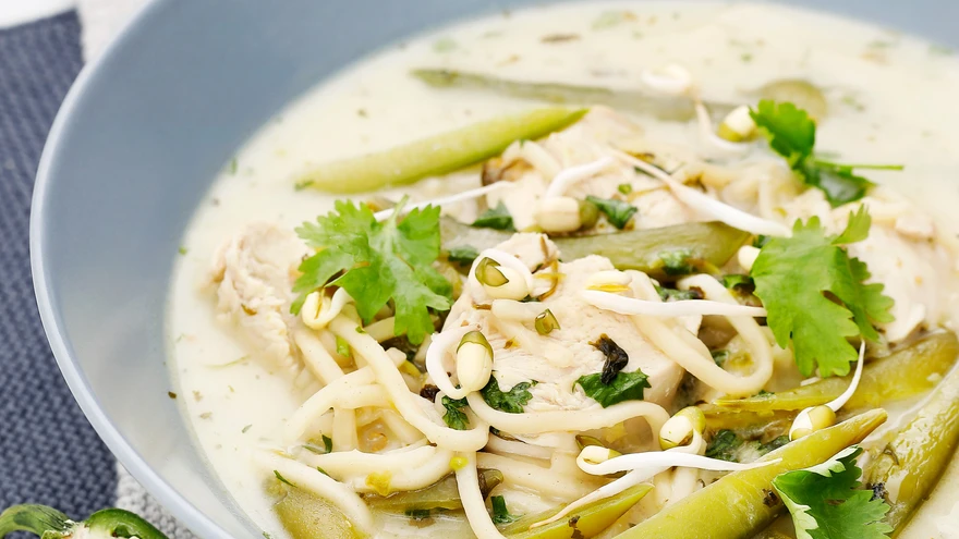 Tai köögist inspireeritud ilus roheline ja maitsev kanasupp kookospiima ja rohke rohelisega. Jagub umbes neljale ning saab valmis poole tunniga.