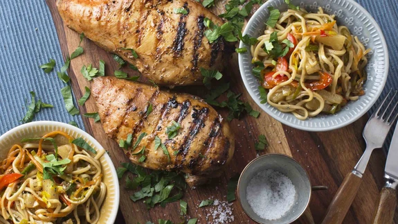 Leota nuudleid kuumas vees ning tõsta need serveerimiskaussidesse.