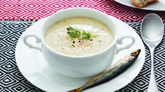 Lihtsale kartulipüreesupile annab suitsukala lisamine põneva meki. Fotol olev supp valmis kuumsuitsuräimest, ent sobivad ka heik, tursk, makrell ehk skumbria jm....